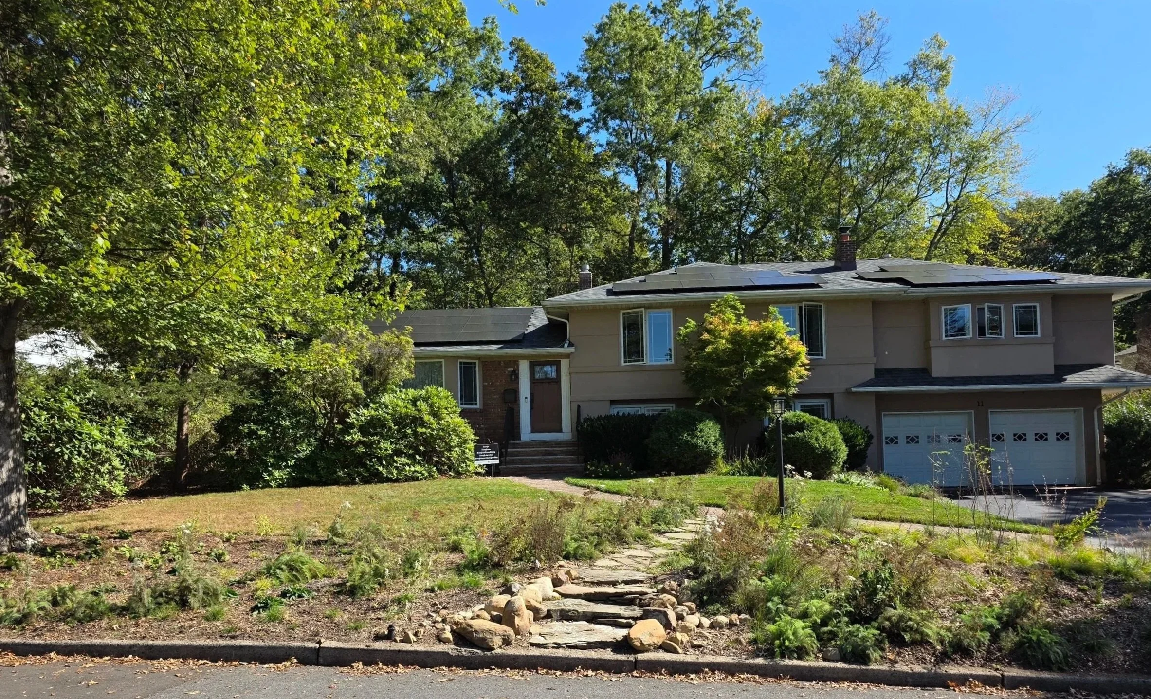 project: phased lawn removal, natural stone steps from street, planted with low maintenance native grasses and perennials