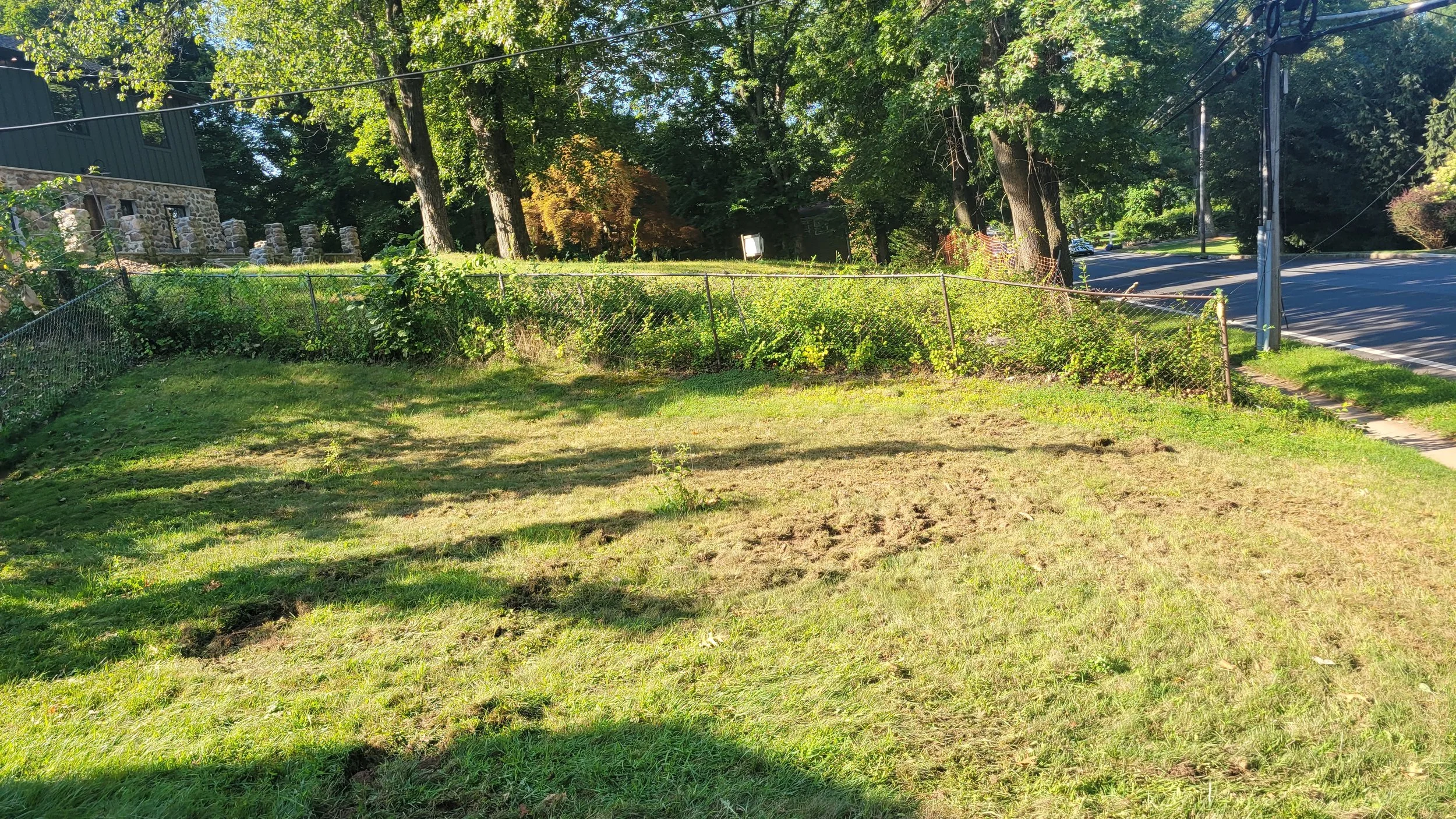 before: patchy, high maintenance lawn, sloped area that was difficult to mow